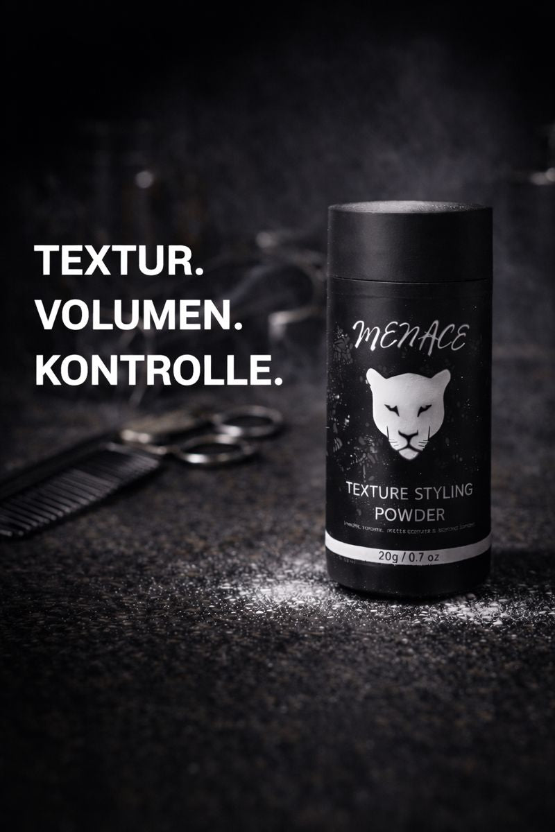 Bring dein Hairstyling aufs nächste Level! Unser Menace Volumenpuder ist dein Daily-Gamechanger für perfekten Halt, natürlichen Glanz und flexiblen Style – egal ob lässiger Alltags-Look oder freshes Ausgeh-Setup.